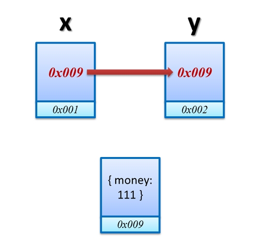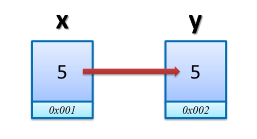 從底層實際運作的角度來看,不管是原生型別 (Primitive) 或物件型別 (Object),在作 x = y